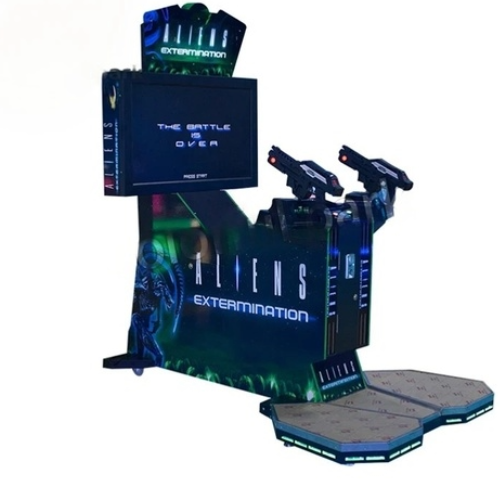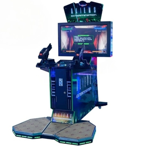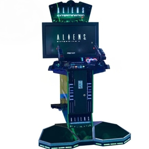 منصة وقوف مزودة بوسادات للقدم، شاشة كبيرة عالية الدقة، وإضاءة نيون تعزز الأجواءالمستقبلية والخياليةمستوحاة من عالم أفلام "Aliens"، حيث يقاتل اللاعبون في بيئات مظلمة ومليئة بالمخلوقات الفضائية